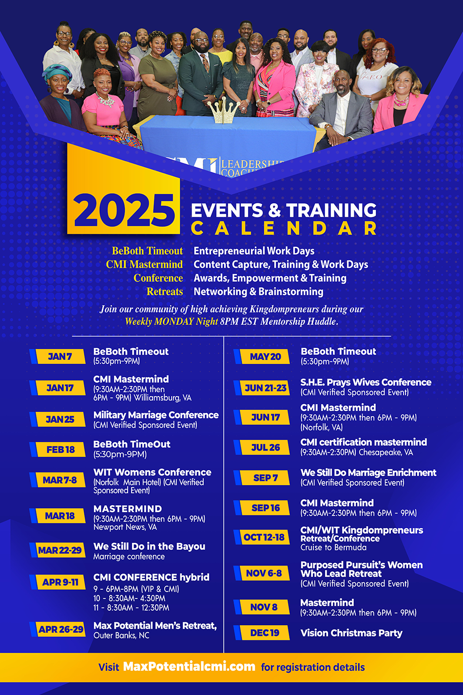 Whether you are seeking to become a Certified Life Coach or Speaker, want to Scale your Business of Any Kind or are ready to finally make true impact and increase your income... This is the place and we are the Team you’ve been praying for to MAXIMIZE YOUR POTENTIAL!